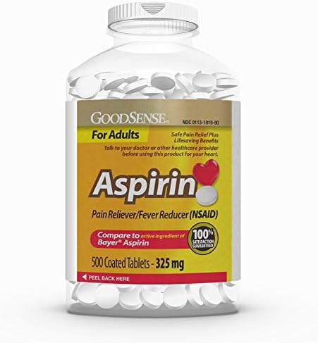 Amazon Com Goodsense Aspirin Pain Reliever Fever Reducer Nsaid 325 Mg Coated Tablets Temporarily Relieves Headache Muscle Pain Toothache Menstrual Pain Pain And Fever Of Colds Minor Pain Of Arthritis Health