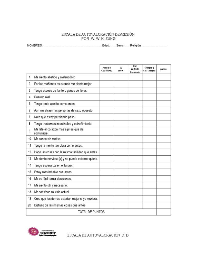 Test Escala De Zung Depresion Y Ansiedad