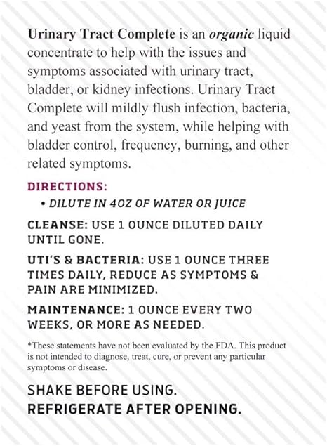 Amazon Com Urinary Tract Complete 8oz Organic Liquid Bladder Uti Uti Prevention Yeast Candida Infection Treatment Health Personal Care