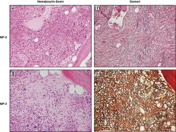 It shows a step-wise evolution from a physiologically normal state through first minimal focal and latter on diffuse increase of reticulin fibers up to the formation of collagenous fibers in advanced stages of the process associated in some of the. Reda G Riva M Fattizzo B Cassin R Giannarelli D Pennisi M Freyrie A Cairoli R Molteni A Cortelezzi A Semin Hematol 2018 Oct554202-208. Bone marrow fibrosis is a common phenomenon and is observed in various pathological conditions such as myeloproliferative and myelodysplastic neoplasms leukemias lymphomas mastocytosis paroxysmal nocturnal hemoglobinuria plasma cell myeloma Gauchers disease granulomas metastatic tumors hyperparathyroidism chronic renal failure osteopetrosis autoimmune disorders and Pagets disease.