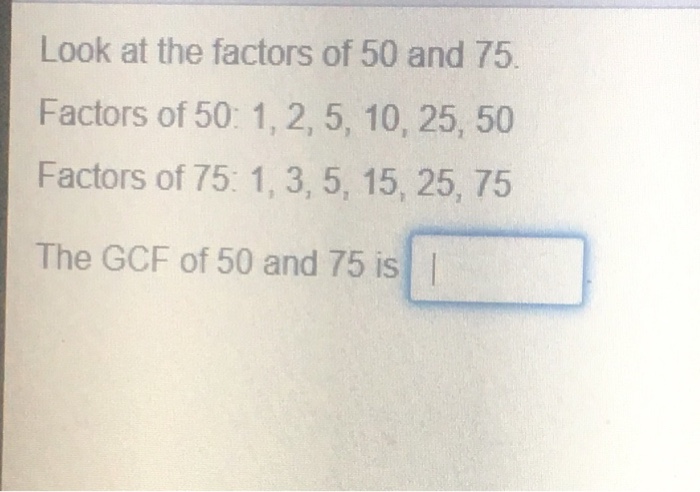 Solved Look At The Factors Of 50 And 75 Factors Of 50 1 Chegg Com